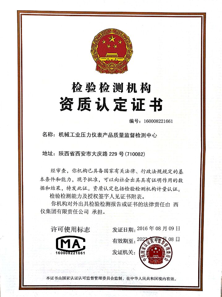 機(jī)械工業(yè)壓力儀表產(chǎn)品質(zhì)量監(jiān)督檢測(cè)中心
